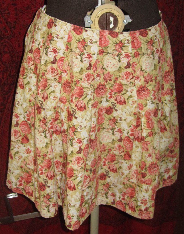 Faltenrock, etwas über knielang mit aufgestickten spitzenrosen